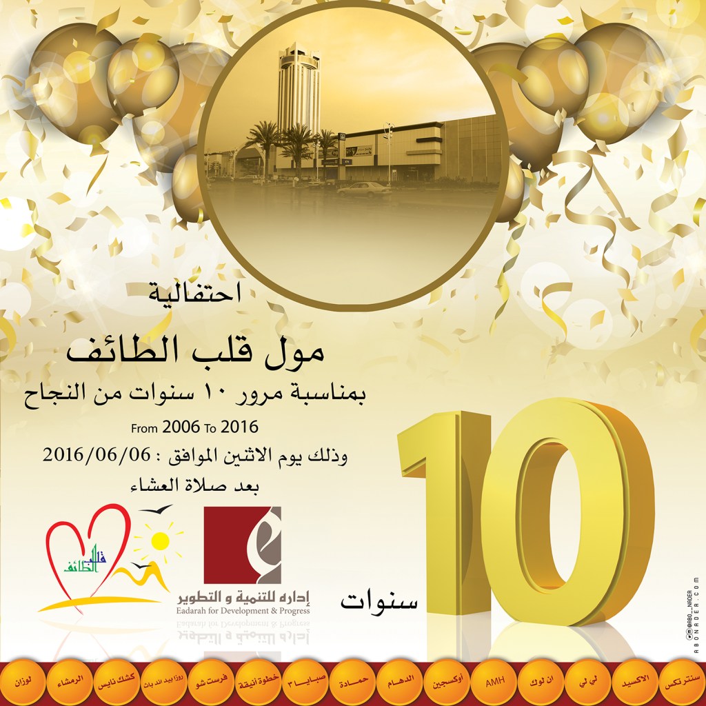 بطاقة دعوة ( لإحتفالية مول قلب الطائف بمناسبة مرور ١٠ سنوات من النجاح ) . #تصميمي #تصاميم_ابونادر #محمدالشهري #الطائف #الطائف_الان #الطايف #رمضان #مبارك #مول #مولات #قلب_الطائف